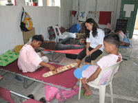 While some were recovering from surgery, others were anticipating their operations. Meanwhile, the Outreach volunteers provided needed diversions in the form of games, puzzles, cards, crayons, and books. The universal language of play cemented bonds between families and UI volunteers. We were amazed to see a young 10-year-old boy reading IN ENGLISH much better than many of their counterparts in American schools.